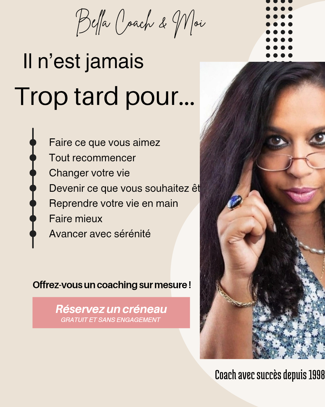Vous souhaitez donner un coup d'accélérateur à votre carrière ou concrétiser votre rêve d'entrepreneuriat ? J'aide des personnes comme vous depuis 1998, bien avant la mode du coaching!
